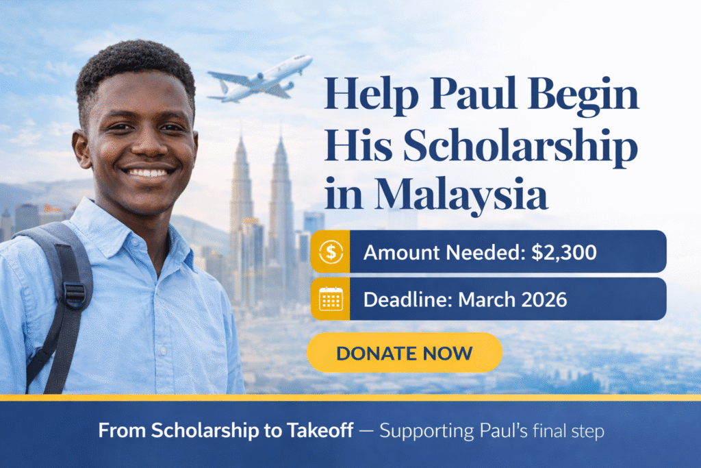 Paul Wai, a determined student from South Sudan, has earned a fully funded scholarship to Albukhary International University (AIU), Malaysia. His tuition, accommodation, and living expenses are fully covered.